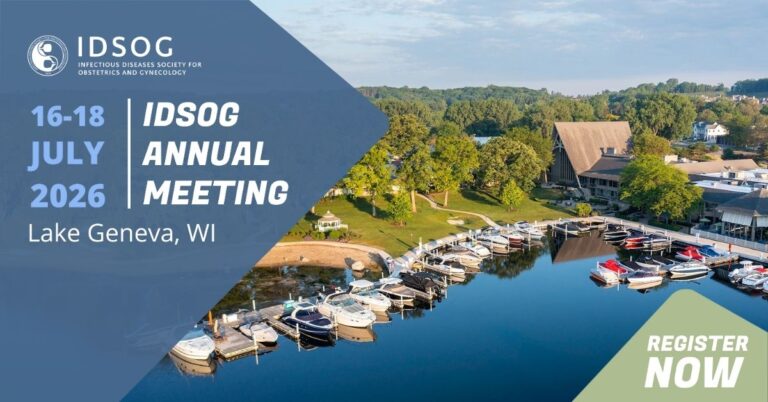 REGISTER NOW and attend the Infectious Diseases Society for Obstetrics and Gynecology (IDSOG) Annual Meeting in Lake Geneva, WI, July 16-18, 2026! It will be a pleasure to welcome new members, new speakers and connect with our peers. We look forward to dynamic, thoughtful presentations, and cannot wait welcome you at the 2026 Annual Meeting.